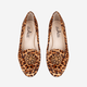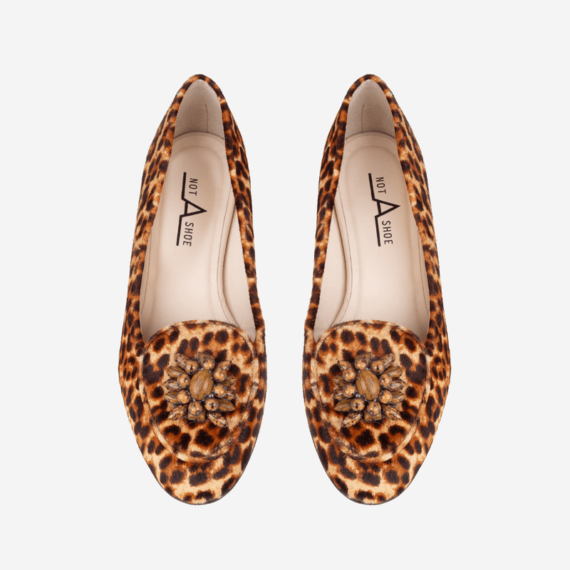 A Loafer Onça é confeccionada com pelo de estampa de onça, com um broche de pedraria exclusiva para se destacar em suas produções. A sandália é produzida 100% no Brasil.
