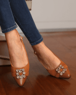 A Sapatilha Olivia Camel é sinônimo de sofisticação, feita em couro e camurça, com um broche de pedrarias exclusivas na parte frontal. Possui tira regulável para garantir o conforto.